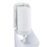 Универсальный диспенсер предназначен для размещения и подачи бумажных полотенец либо туалетной бумаги из рулонов с центральной вытяжкой в общественных санитарных узлах гостиниц, предприятий общепита, медицинских учреждений и других мест массового пребывания. Модель запирается на ключ. Корпус изготовлен из ударопрочного ABS-пластика.